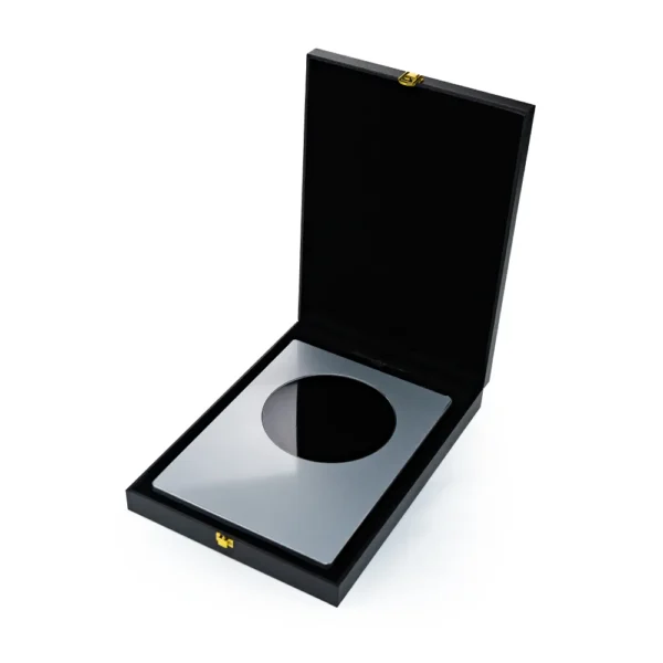 • Packaging: Vertical opening black fiber board box with gold lock closure
