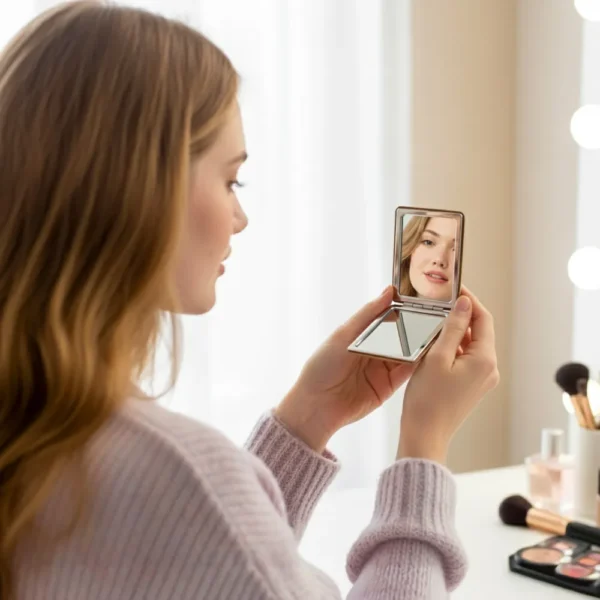 • Design: Foldable, compact rectangle pocket mirror (double-sided with one magnified side)