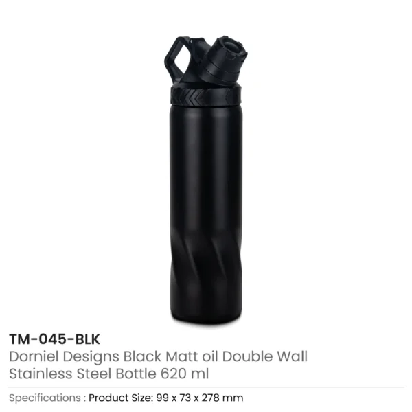Stainless Steel Water Bottles in Black Matte, Double Wall, 620ml